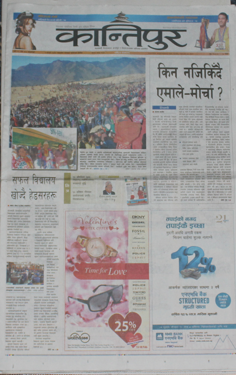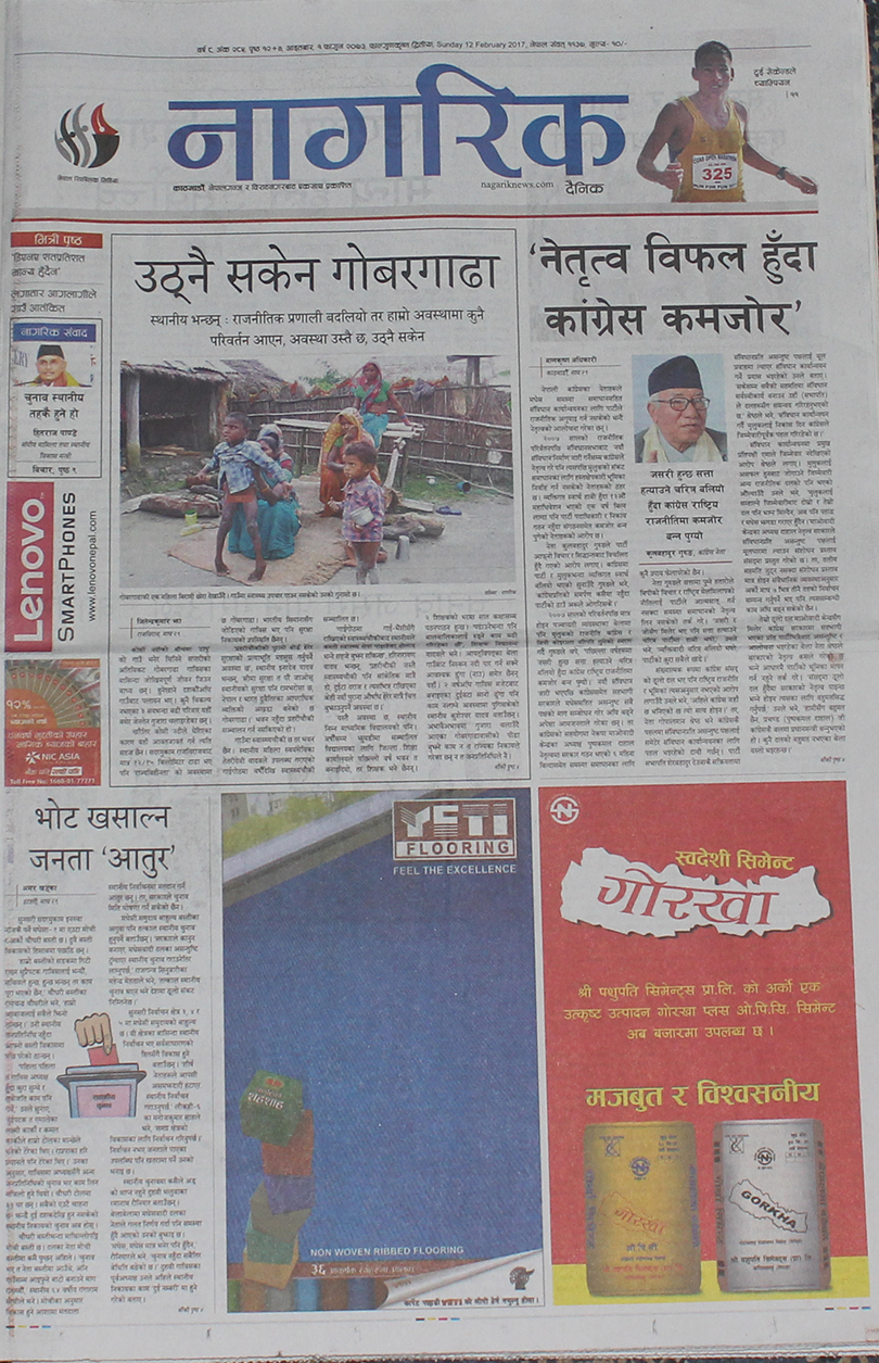 सप्तरीस्थित गोबरगाढा गाउँवासीको पीडालाई मुख्य समाचार बनाएको नागरिक दैनिकले भोट खसाल्न जनता आतुर भएको समाचारलाई प्राथमिकता दिएको छ ।