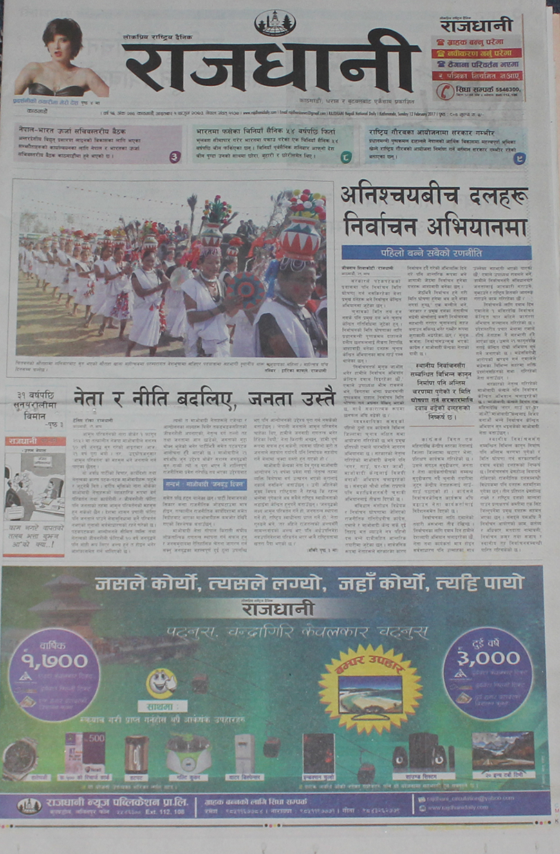 राजधानी दैनिकले अनिश्चयबीच दलहरु निर्वाचन अभियानमा लागेको समाचारलाई महत्व दिएर प्रकाशित गरेको छ ।