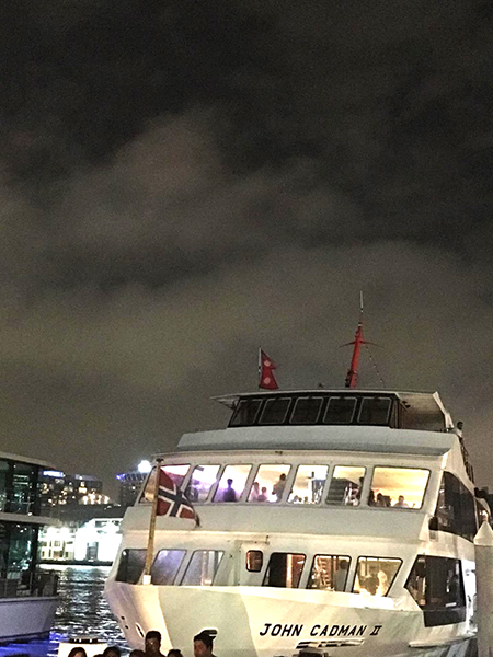 रात्रीभोजसहितको यो क्रुज पार्टीको नाच, गान तथा खानपिनमा भने क्याप्टने ब्राम सहभागी हुन पाएनन् । ‘मेरो पेशा तथा जिम्मेवारीबाटै म रमाएँ’ ब्राम भन्छन-‘रमाइरहेका नेपाली दाजुभाईहरुलाई प्रशान्त महासागर घुमाउनुमै मलाई आनन्द मिल्यो ।’